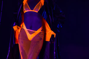 Refined and revealing, this laser-cut latex pencil skirt features a delicate fishnet pattern that hugs every curve. Made from .45mm latex, the form-fitting silhouette sits high on the waist and falls just below the knee for a sleek, tapered finish. The fine diamond-cut design creates a provocative, skin-baring effect while maintaining a sharp, graphic edge. Perfect for layering or standing boldly on its own.