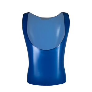 Designed with a scoop neck, this suspender-look tank can also be worn reversed with the scoop at the back.