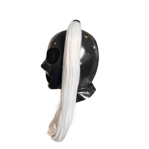 Spice up your latex look with our Stallion Hood, a bold twist on our classic Moderne Hood. Featuring two long ponytail hair attachments and a sleek, high-shine latex finish, this hood is made to stand out. Choose between cat-eye or oval-eye cutouts to suit your style, and mix and match hair colors for a custom, commanding look.