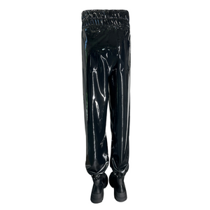 Indulge in the luxurious comfort of these Burlesque Joggers, complete with a 4" elastic waistband and elastic ankles meticulously crafted with gathered and stitched detailing. Handmade in our studio with .45mm imported latex from England, these joggers exude quality and style. Shoes not included.