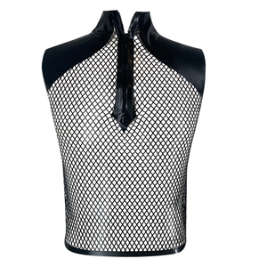 Made from high-quality laser cut fishnet latex, this zip front polo muscle tee is not only stylish, but also breathable and comfortable to wear. It's perfect for any intense session, or a night out. With its styled design and functional benefits, it's a must-have for any latex enthusiast.