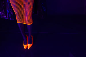 Refined and revealing, this laser-cut latex pencil skirt features a delicate fishnet pattern that hugs every curve. Made from .45mm latex, the form-fitting silhouette sits high on the waist and falls just below the knee for a sleek, tapered finish. The fine diamond-cut design creates a provocative, skin-baring effect while maintaining a sharp, graphic edge. Perfect for layering or standing boldly on its own.