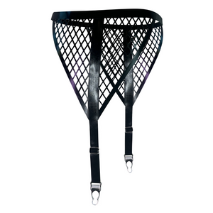 Sitting high-waisted, our garter belt is laser-cut in a fishnet pattern.
