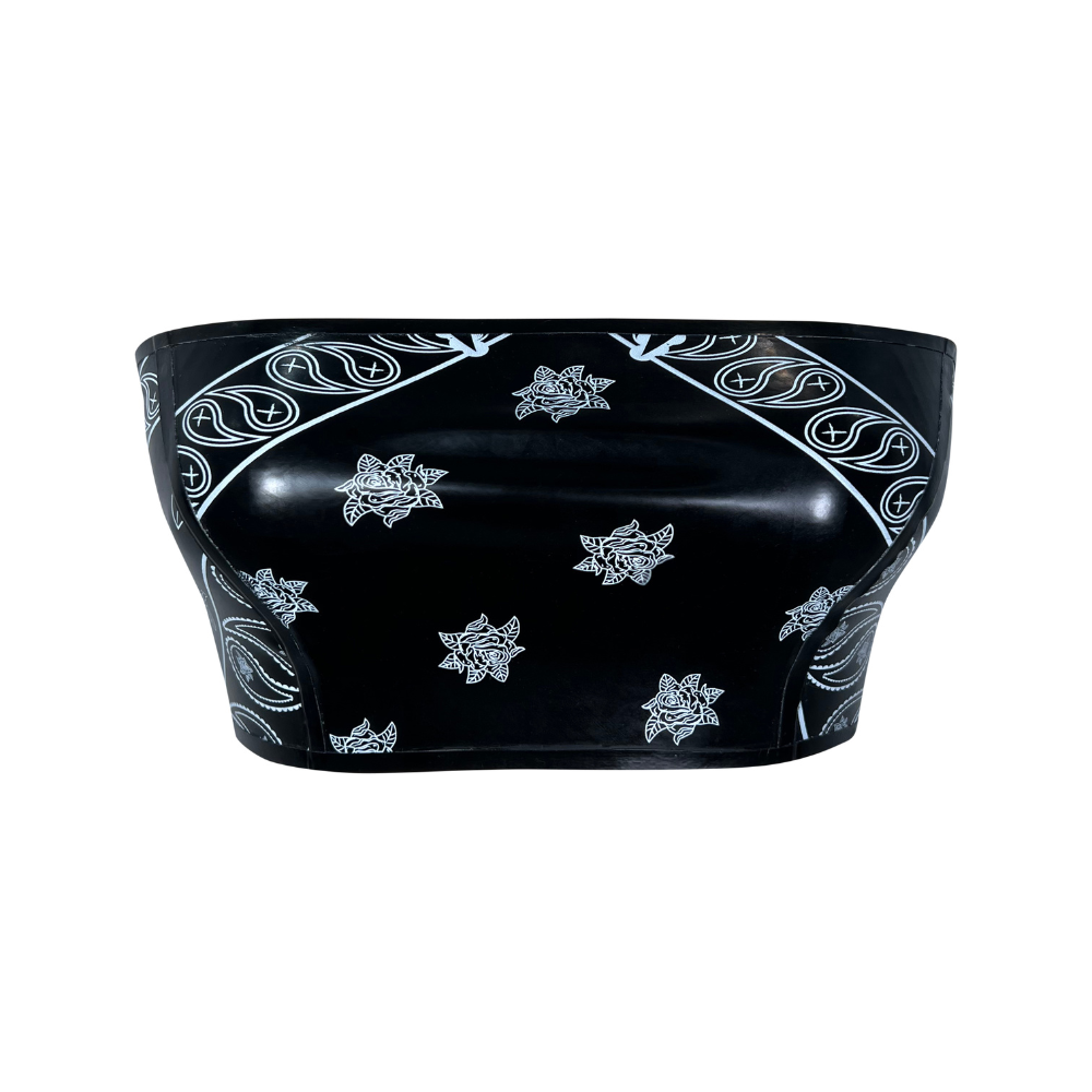 The bandana print tube top has made a major style comeback and this is the perfect one to pair with a high-waisted skirt or pants. Add a blazer for an edgy layered look.