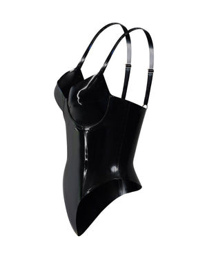 Sculpt your silhouette with our High Rise Bodysuit. Featuring molded cups, silver hardware, adjustable straps, and a flattering high-cut leg, this handcrafted latex piece delivers structure, shine, and timeless sex appeal. Made in California from 0.45 mm and 1.05 mm latex imported from England, it's designed to hug and enhance every curve. Perfect on its own or layered with corsets, skirts, or accessories.