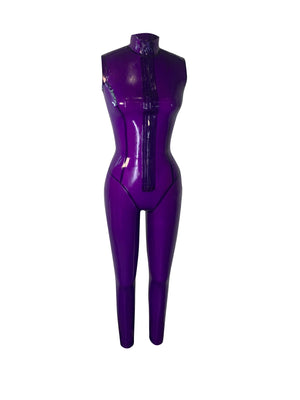 Always a sleek option, this sleeveless catsuit is styled with a mock turtleneck.